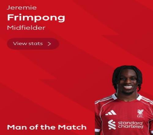 英超第19轮,利物浦主场0-0战平利兹联,利物浦球员弗林蓬被评为全场最佳球员。